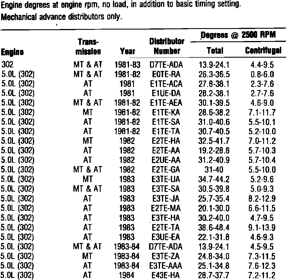 DISTRIBUTOR TIMING ADVANCE: