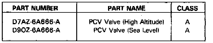 2. Remove the original (Sea Level) PCV valve (D9OZ-6A666-A) and replace it with a new PCV valve (D7AZ-6A666-A).