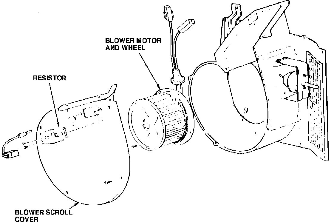 2. Disconnect electrical connectors from resistor on front of blower scroll cover.