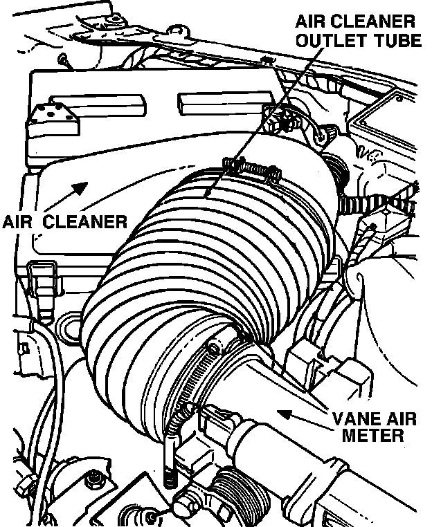 1. Disconnect air outlet hose from air meter and position aside, Fig. 14.