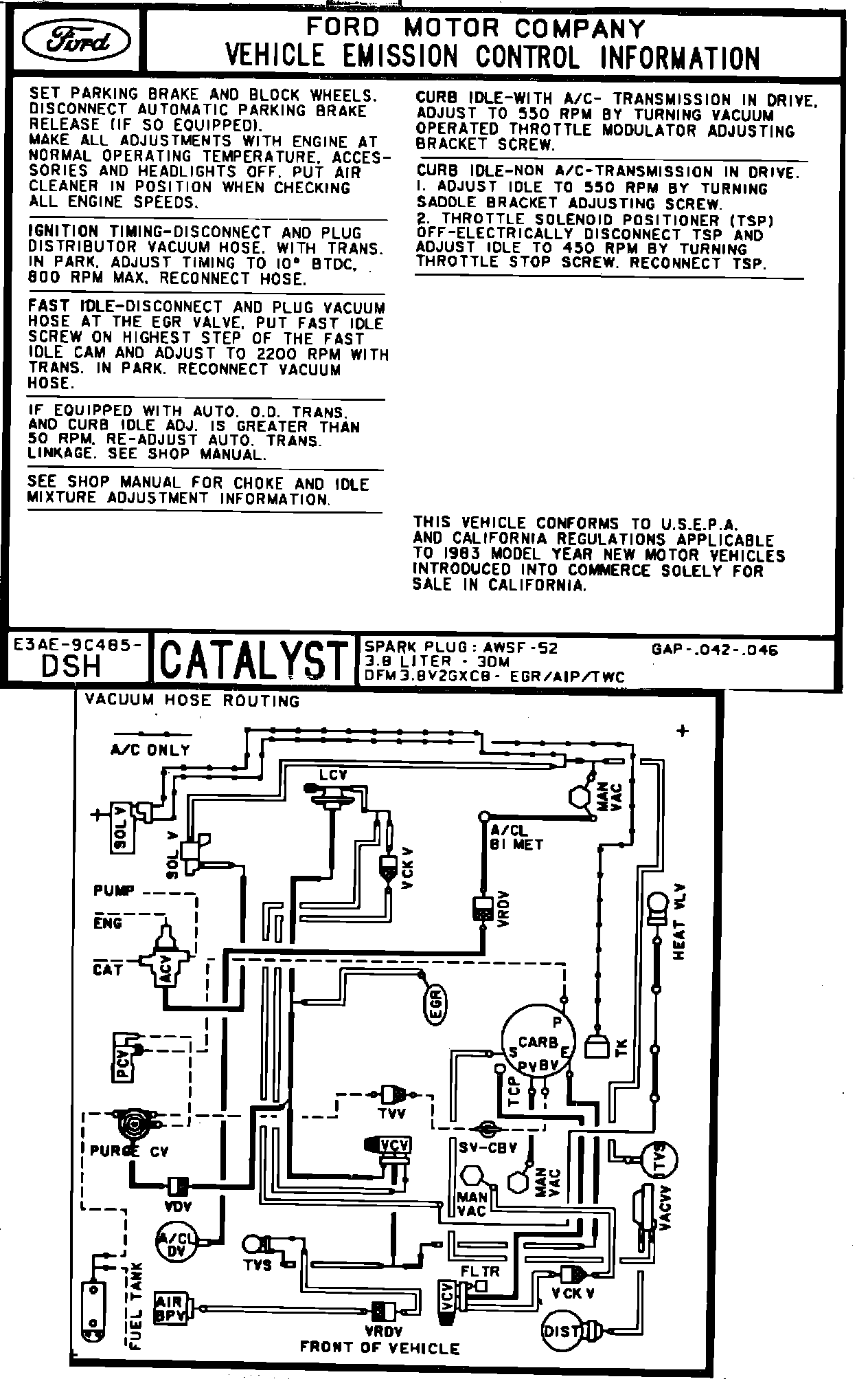 MODEL YEAR: 1983 - ENGINE: 3.8L