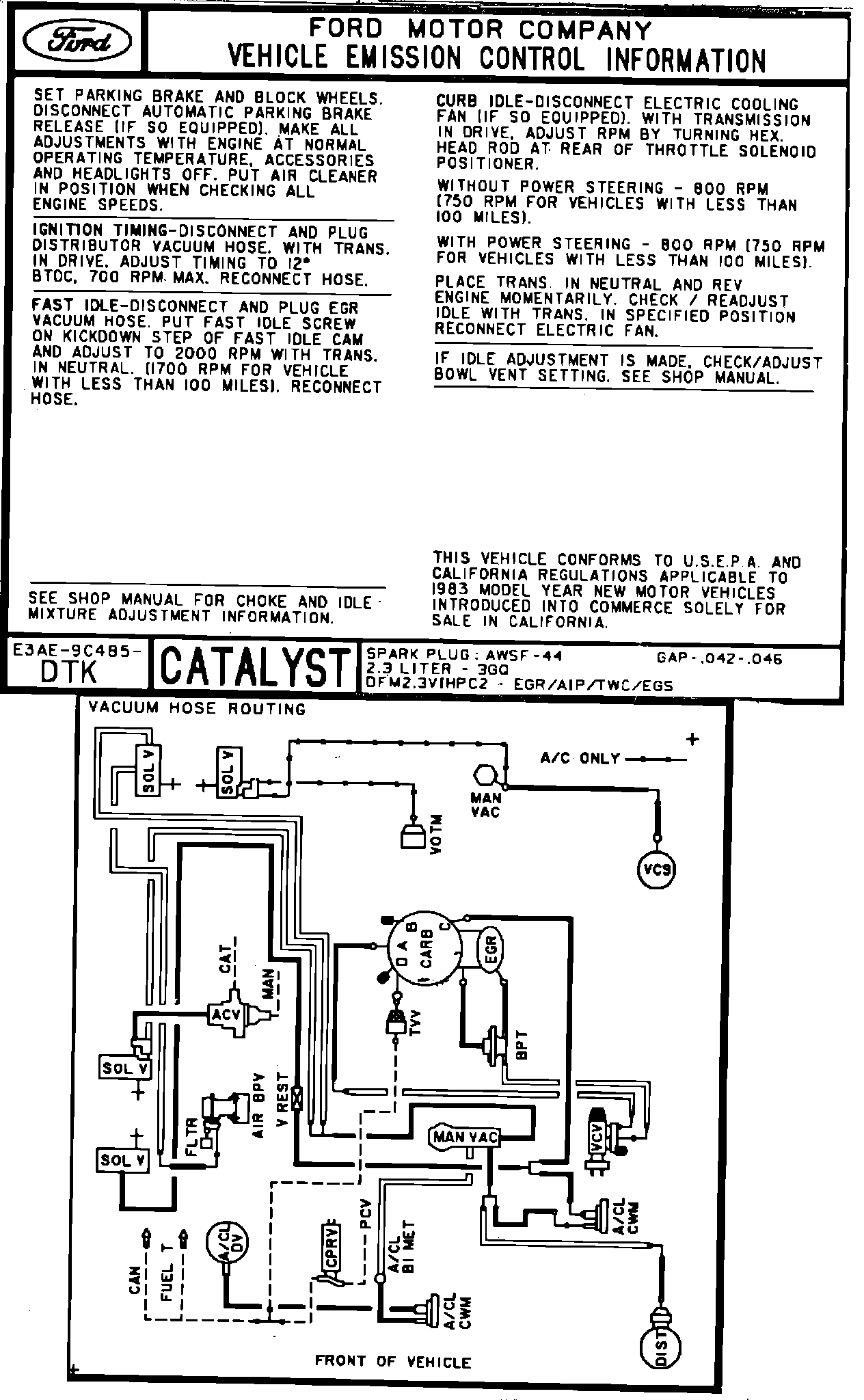 MODEL YEAR: 1983 - ENGINE: 2.3L