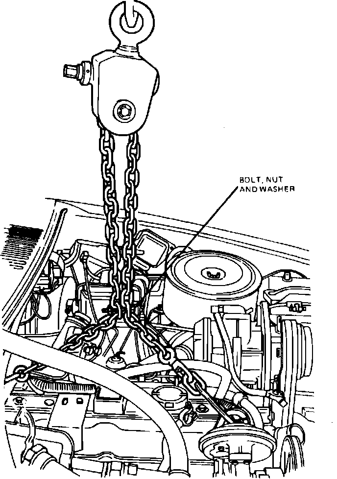16. Disconnect heater hoses from engine, then loosen engine mount attaching nuts.