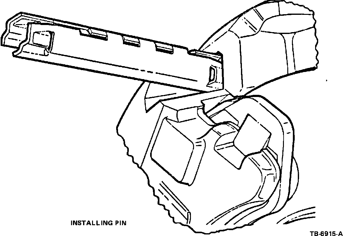 2. Tap the pin on the outboard end with a hammer. Continue tapping the pin inward until the retention tabs on the sides of the pin contact the spindle face. Repeat procedure for the lower pin.