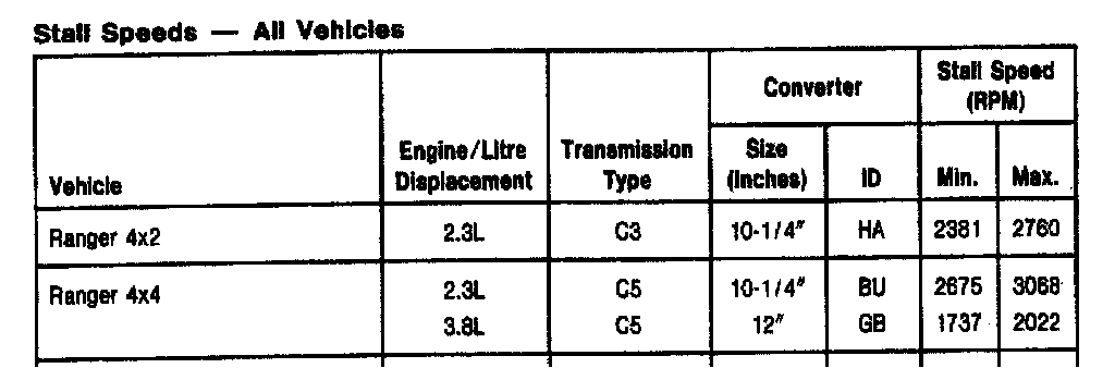 C5 3-spd A/T, Stall Speeds (Ranger):