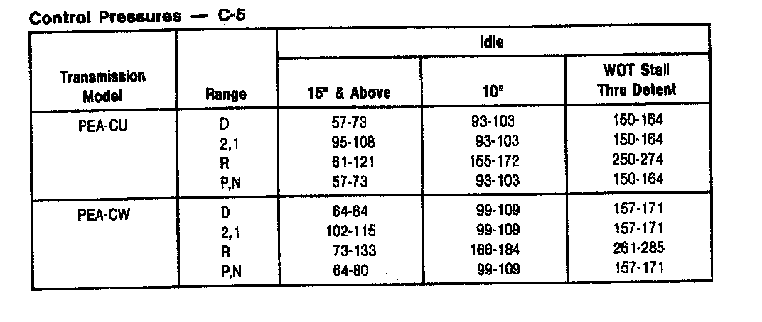 C5 3-spd A/T, Control Pressures: