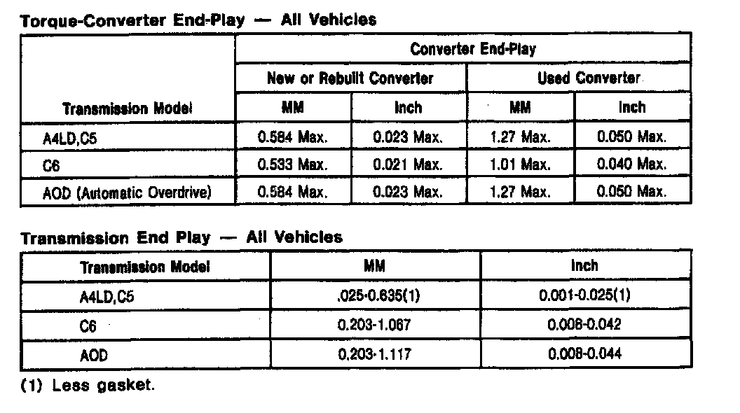 C5 3-spd A/T, Converter/Transmission End Play (All):