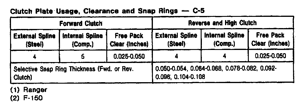 C5 3-spd A/T, Clutch Plate Usage/Clearance:
