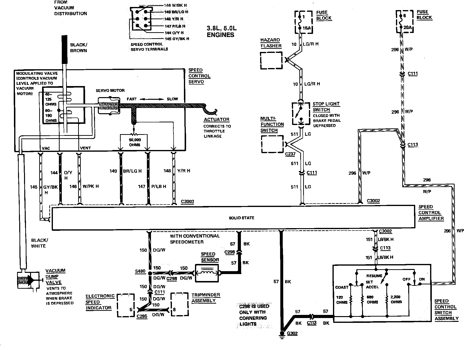 Fig. 88 Speed Control Wiring Circuit. 1983 Cougar & Thunderbird with 6 & 8 Cyl Engine:
