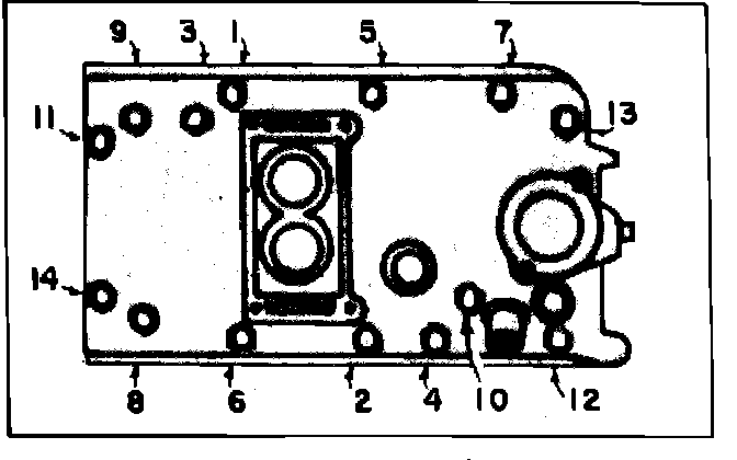 g. Torque bolts in sequence, Fig. 14, in the following increments; 5 ft-lbs., 10 ft-lbs., then to the final torque of 18 ft-lbs.