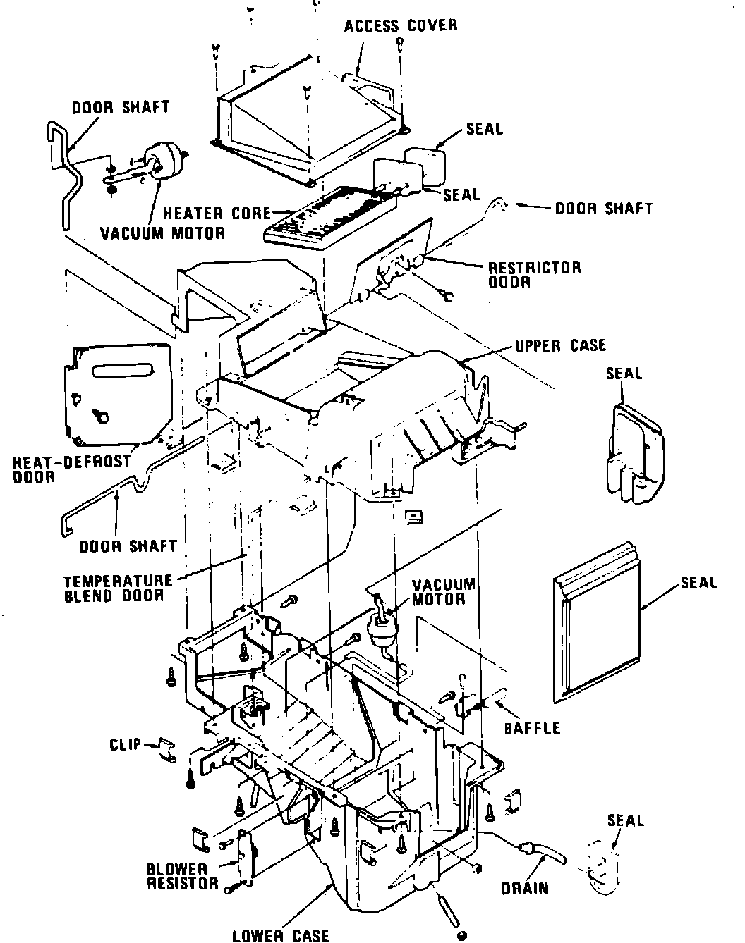 Fig. 8 Heater core with A/C. 1982 Cougar XR-7, 1982 Granada, 1982-83 Fairmont & Zephyr, 1982-88 Thunderbird, 1983-88 Cougar & 1983-86 LTD & Marquis: