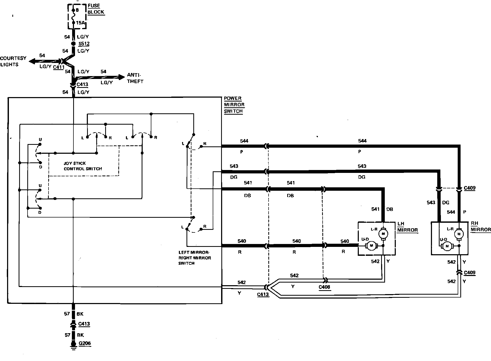 Fig. 77 Power Outside Mirror Wiring Circuit. 1983-84 Cougar & Thunderbird: