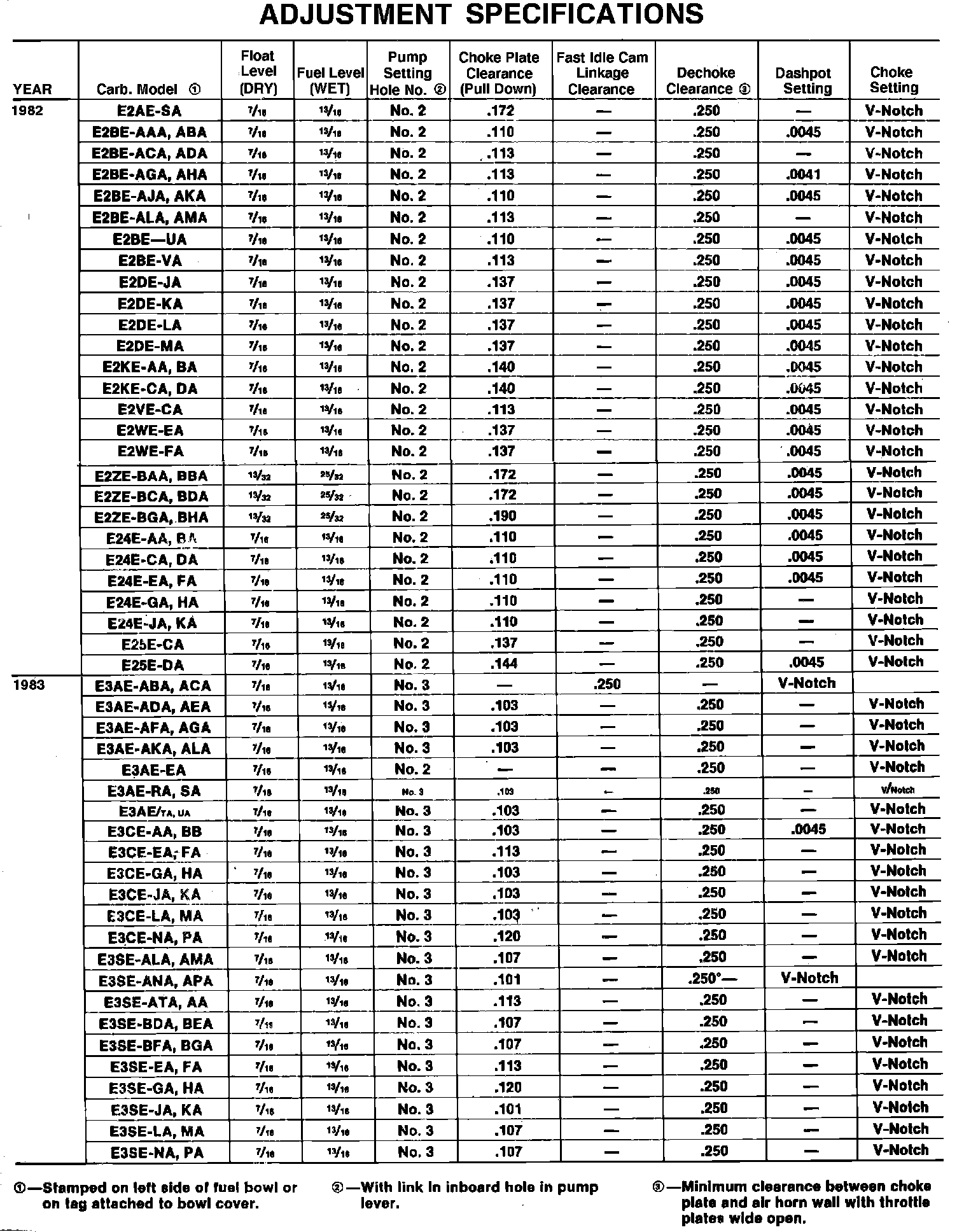Adjustment Specifications: