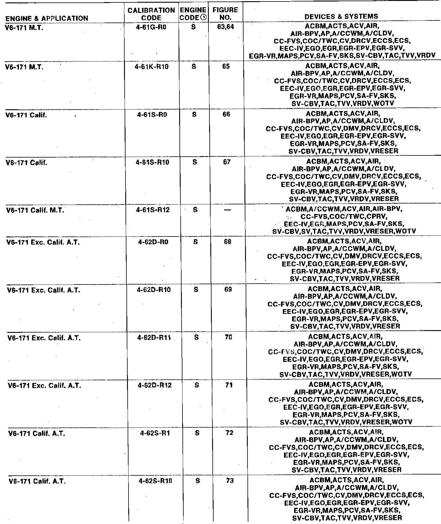 (1)-Eighth digit of Vehicle Identification Number (VIN) denotes engine code.