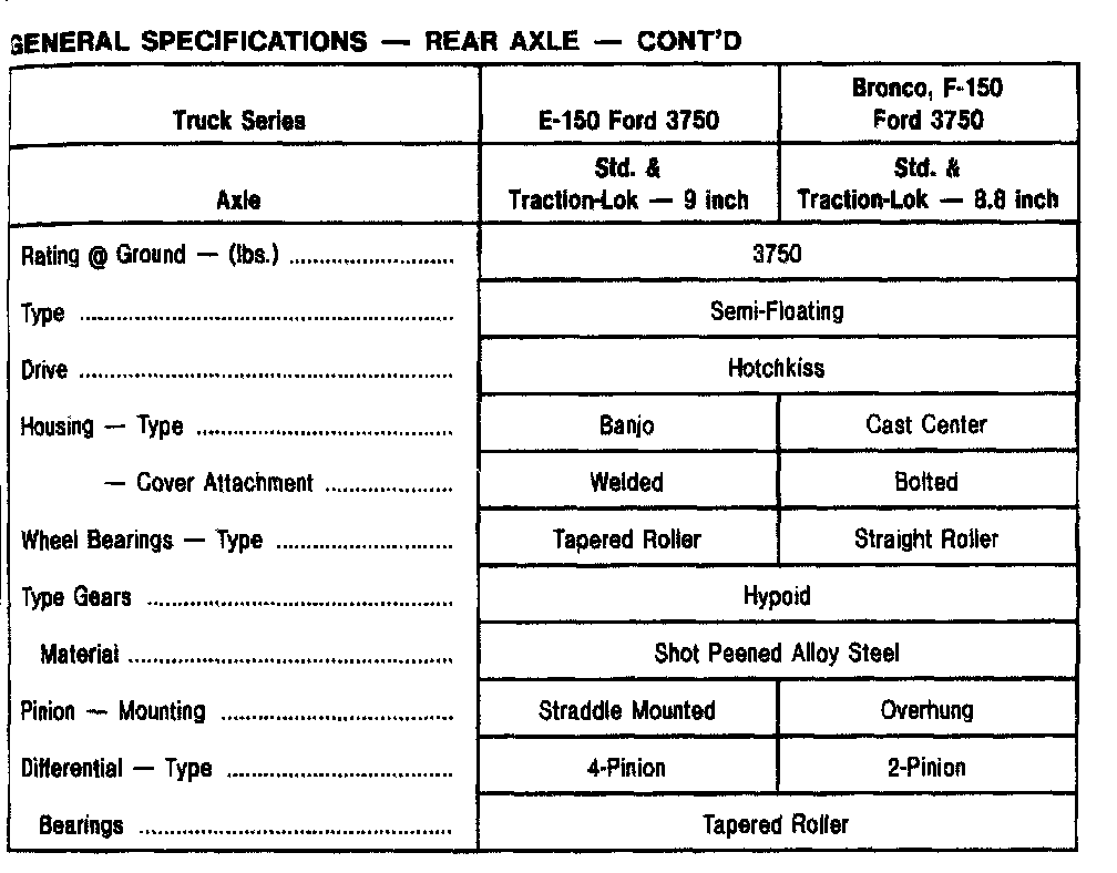 Ford 9.0 Inch/Trac Lok, Differential Data: