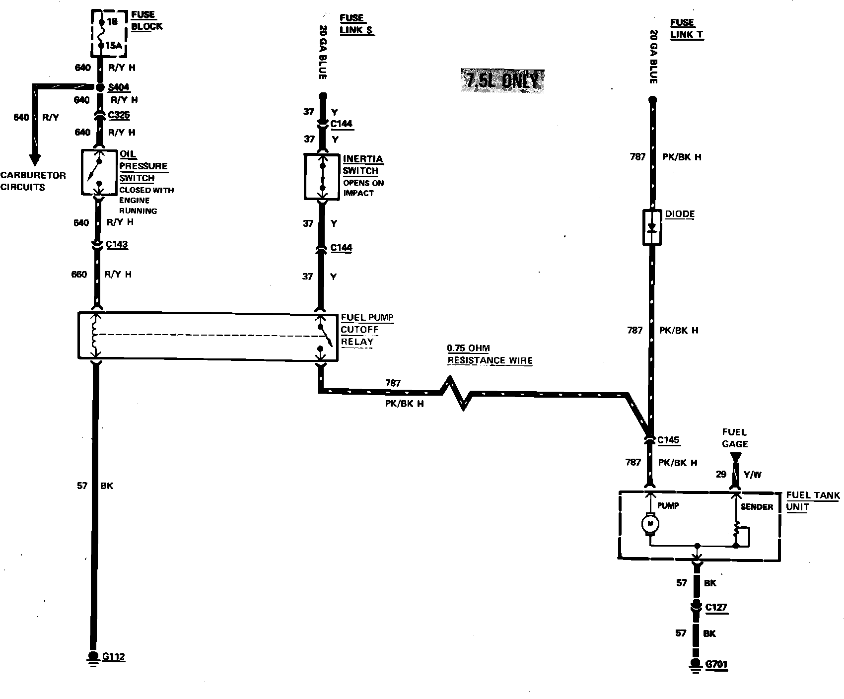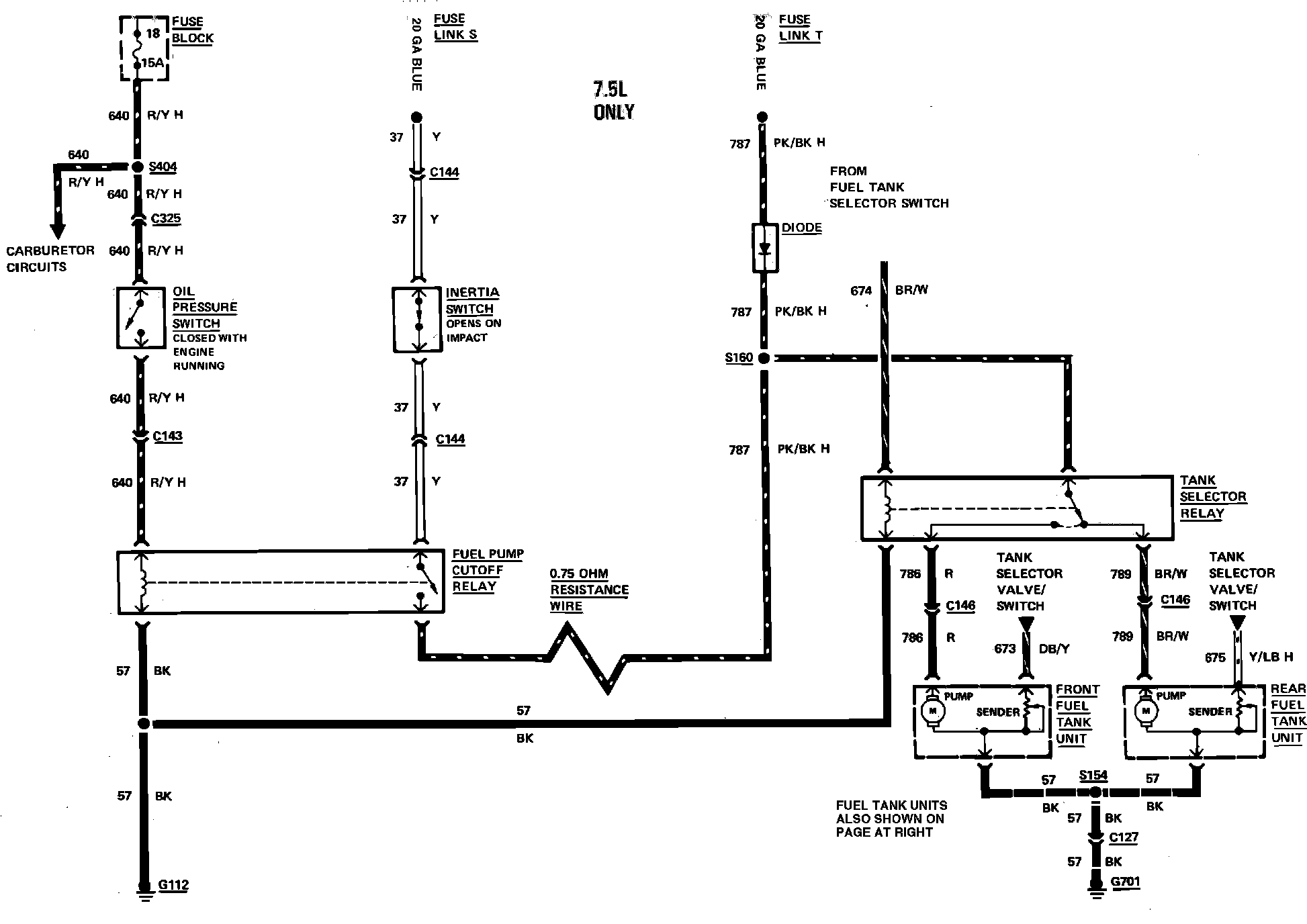 Fig. 43 Electric fuel pump wiring circuit. 1983 Bronco & F100-350 With Single Fuel Tank: