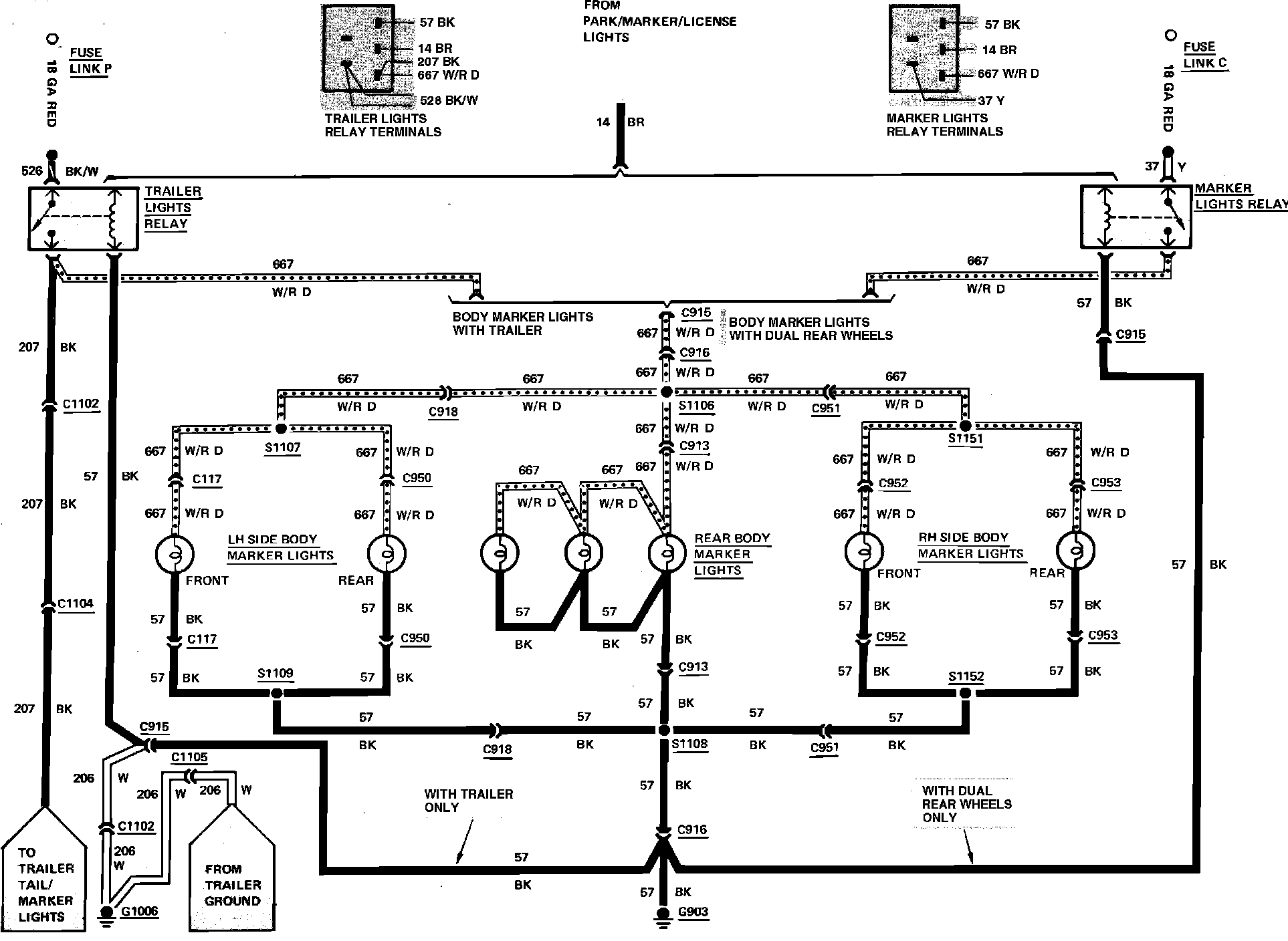 Fig. 117 Rear bed marker & trailer lamp wiring circuit. 1983-84 Bronco & F100-350: