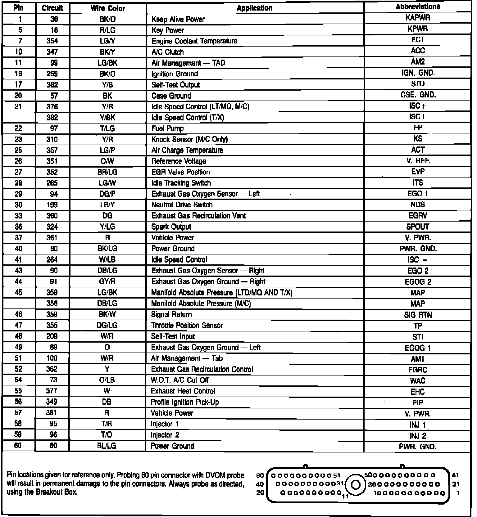 Fig. 63 EEC-IV Module Connector Pin Usage. W/CFI: