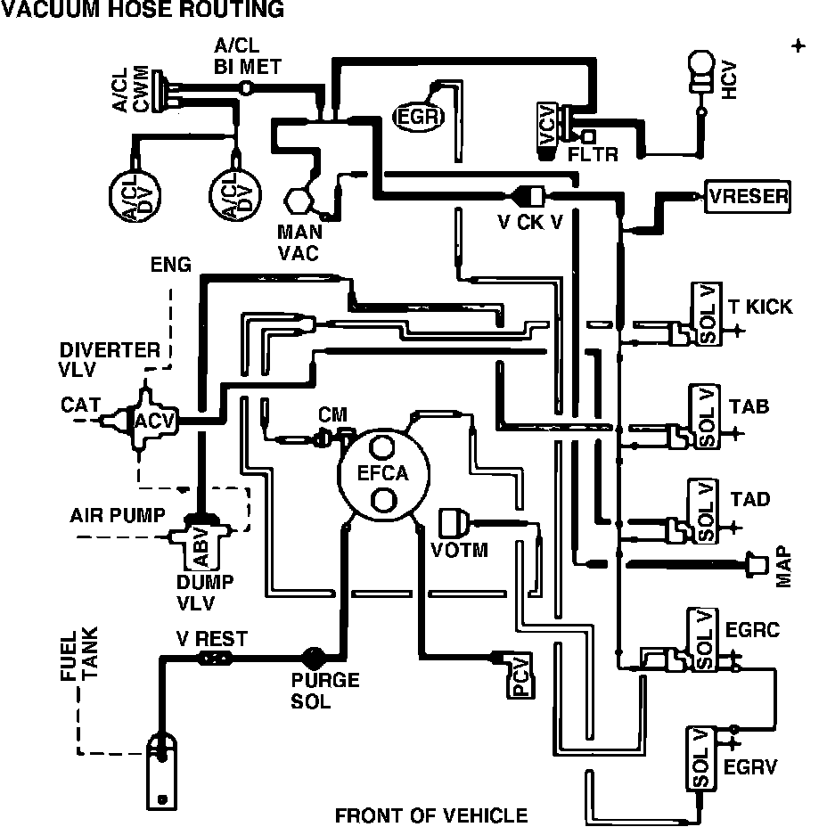 Fig. 41 Vacuum hose routing. 1984 V8-302 w/auto. trans. calib. code 4-22A-R13 Calif.: