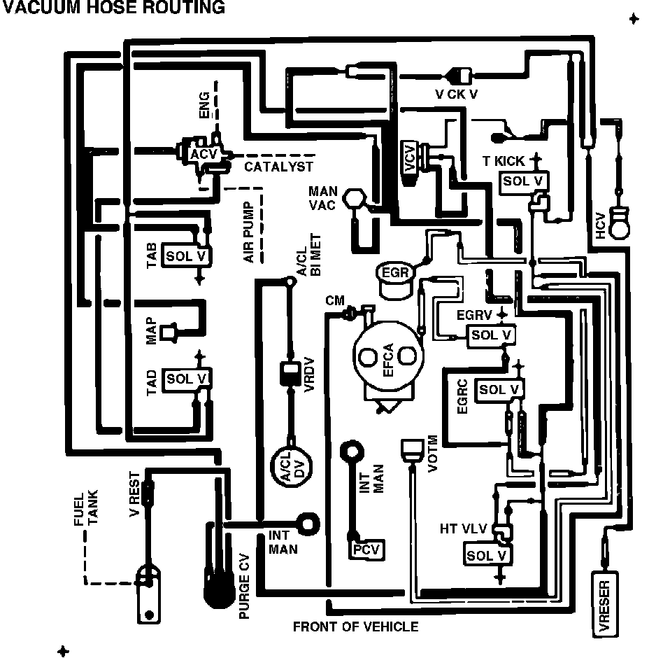 Fig. 43 Vacuum hose routing. 1984 V8-302 w/auto. trans. calib. code 4-22C-R00 exc. Calif.: