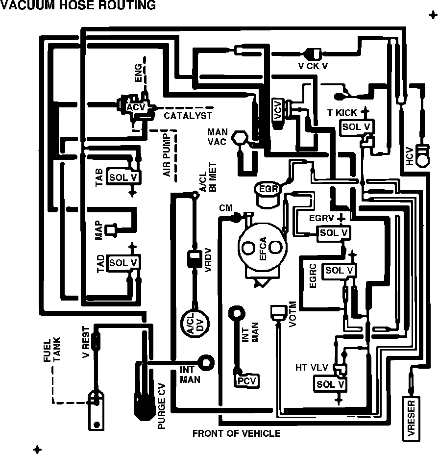 Fig. 48 Vacuum hose routing. 1984 V8-302 w/auto. trans. calib. code 4-22Q-R00 exc. Calif.: