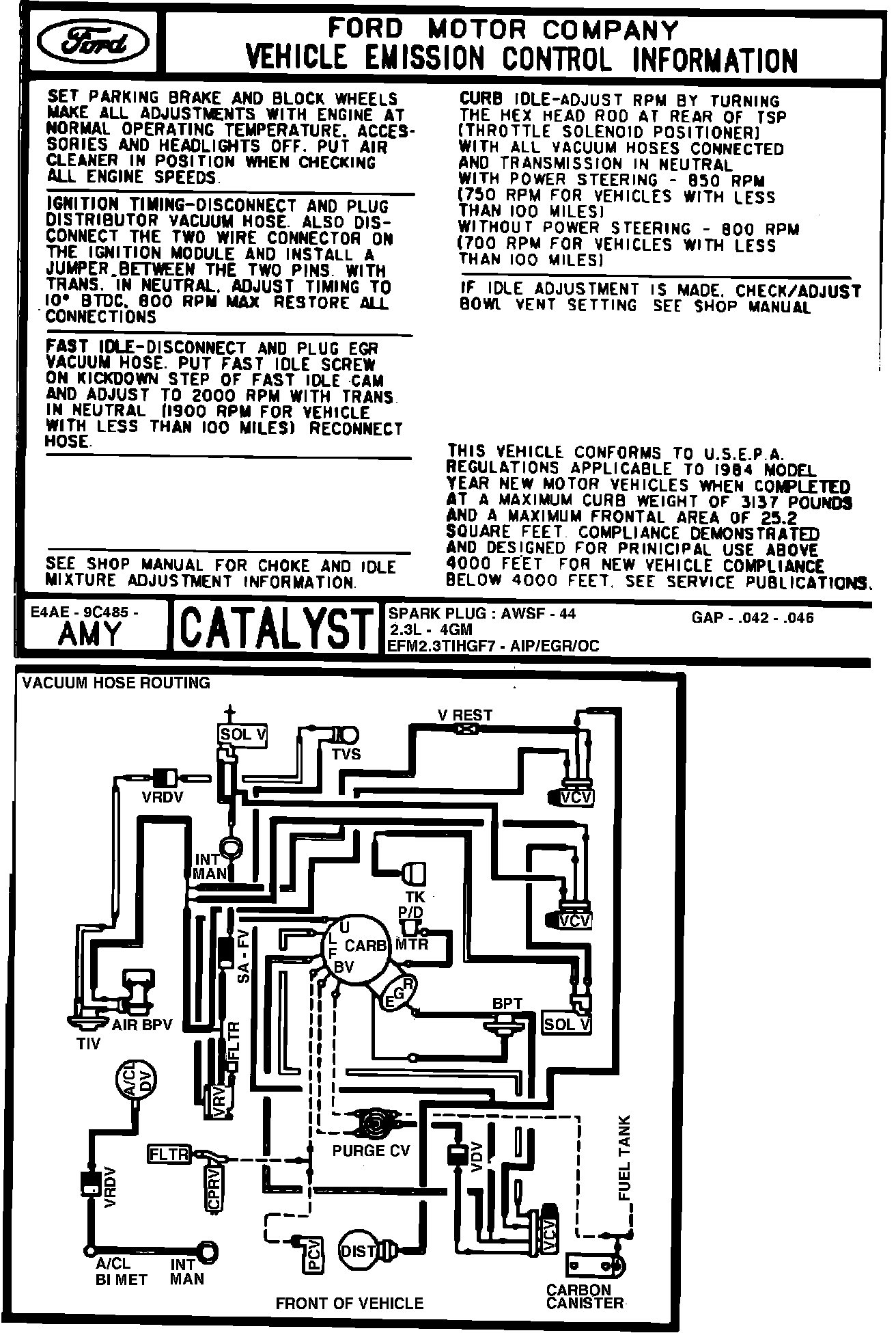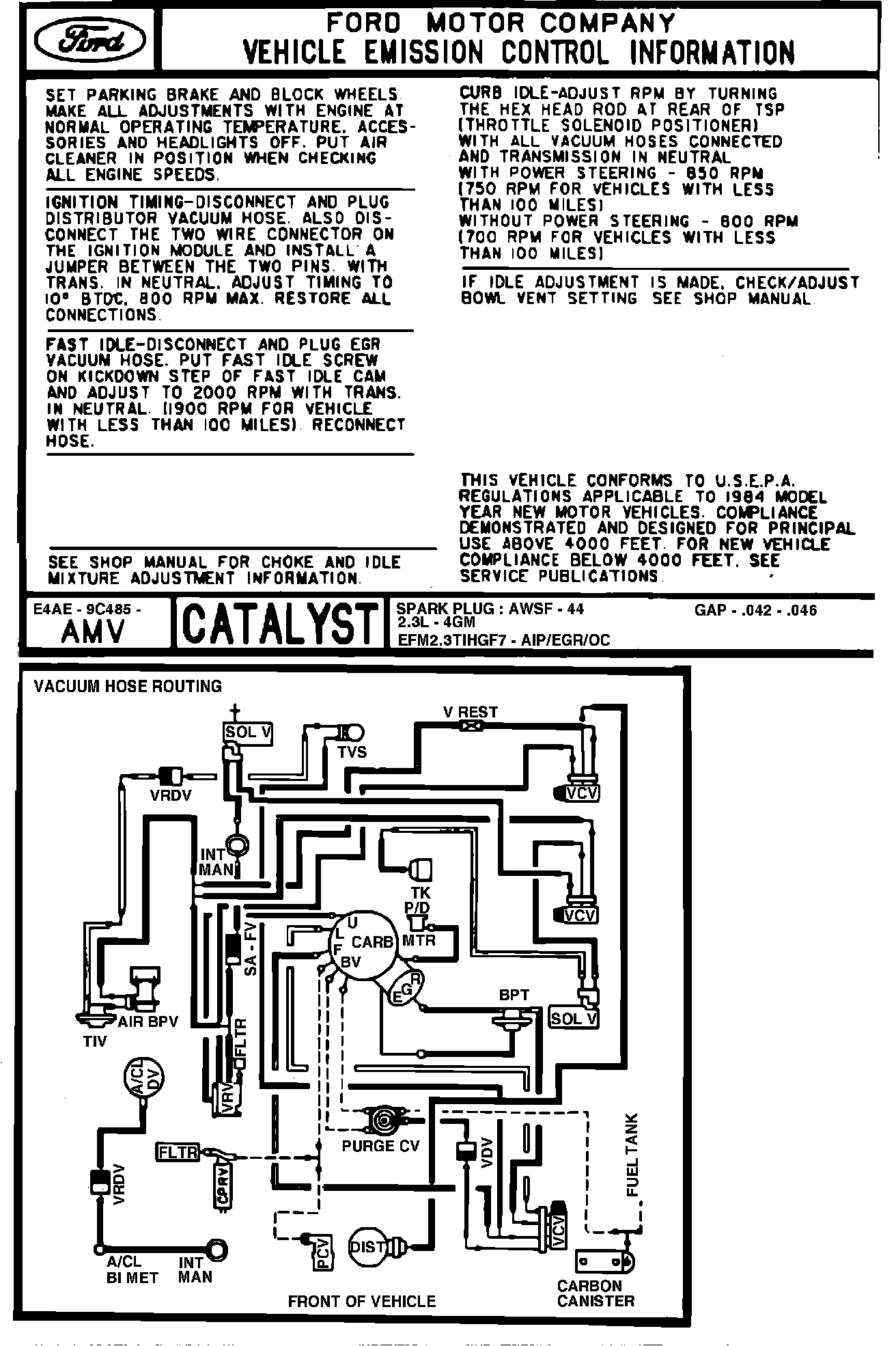MODE YEAR: 1984 (4 x 4) ENGINE: 2.3L