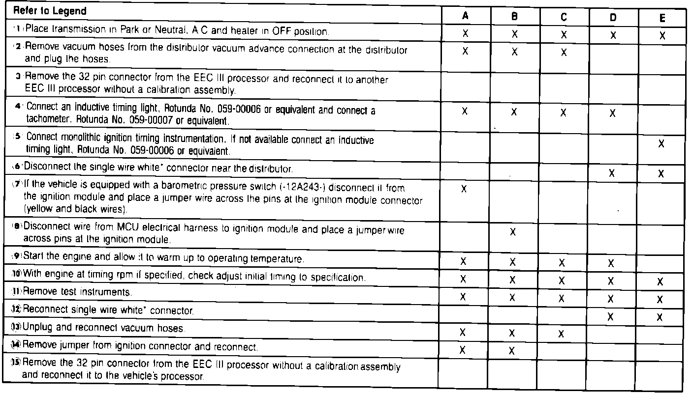 NOTE: Timing not adjustable on 5.0L EEC III Equipped vehicles. *Black connector on some engines.