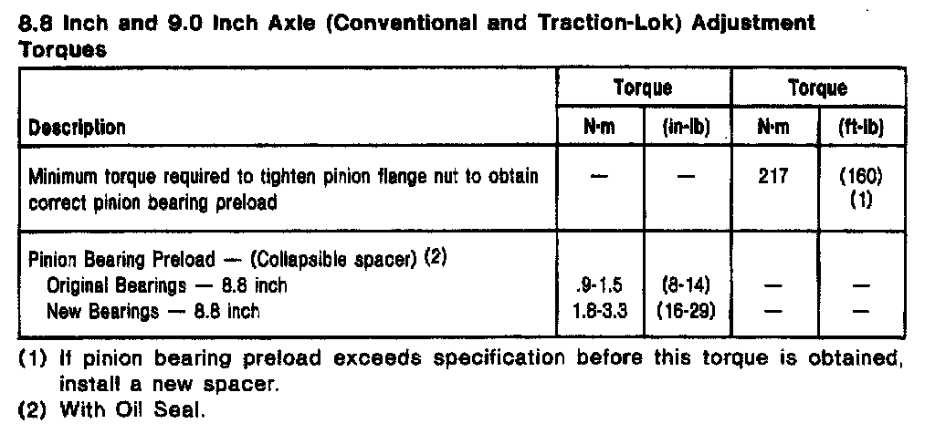 Ford Traction Lok 9.0, Pinion Preload: