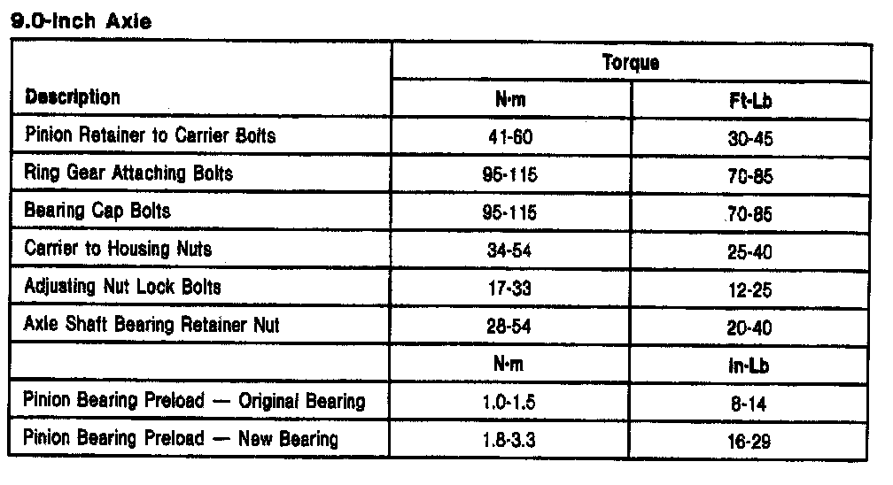 Ford 9.0 Inch, Pinion/Ring Gear Torque: