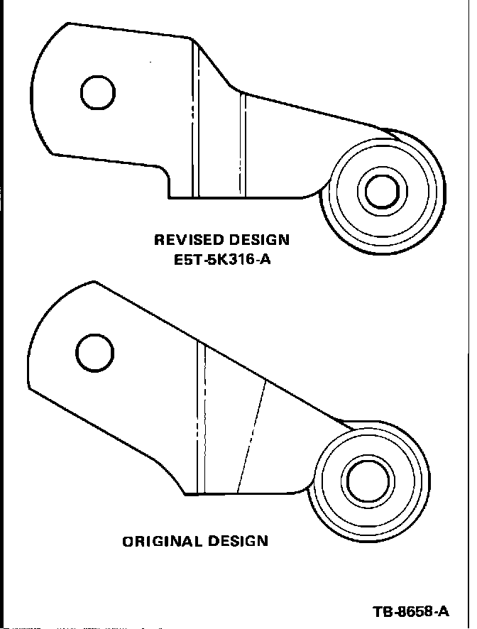 A revised front spring shackle is available to resolve contact between the frame and the prior design bracket. The new bracket incorporates a "clearance" notch to gain clearance and should be installed with the closed end forward. Installing the new bracket backwards will create an interference concern.