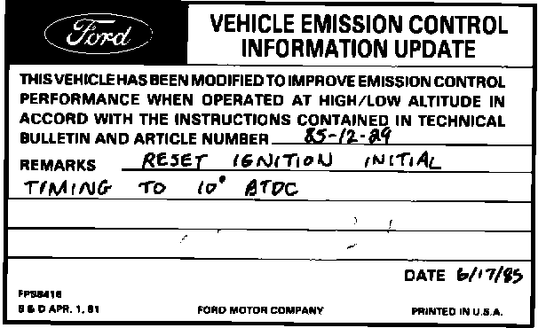 ^ Obtain a Vehicle Emission Control Information Update Label (available at all Ford or LincolnMercury dealers) and fill in the appropriate information as indicated below.