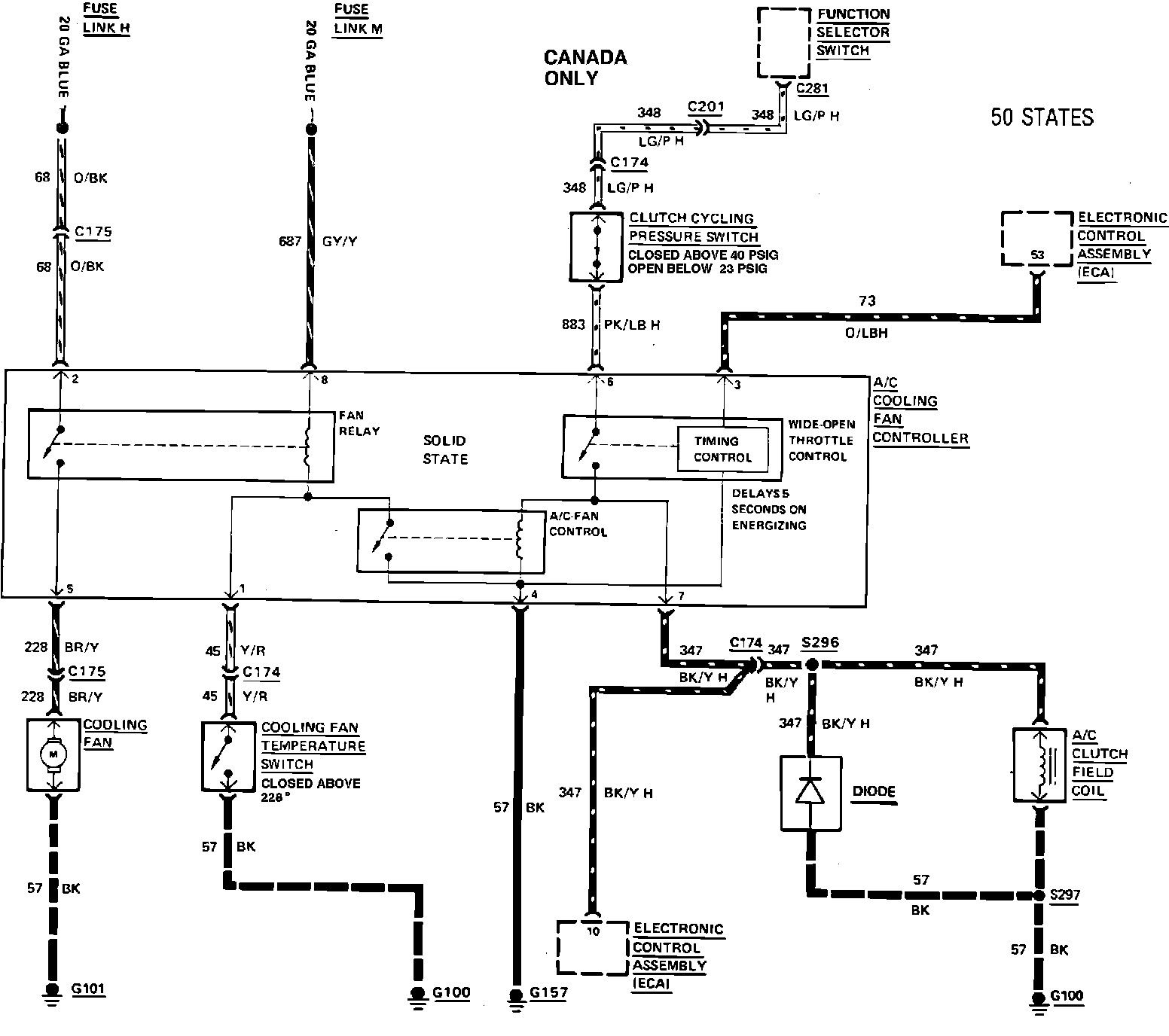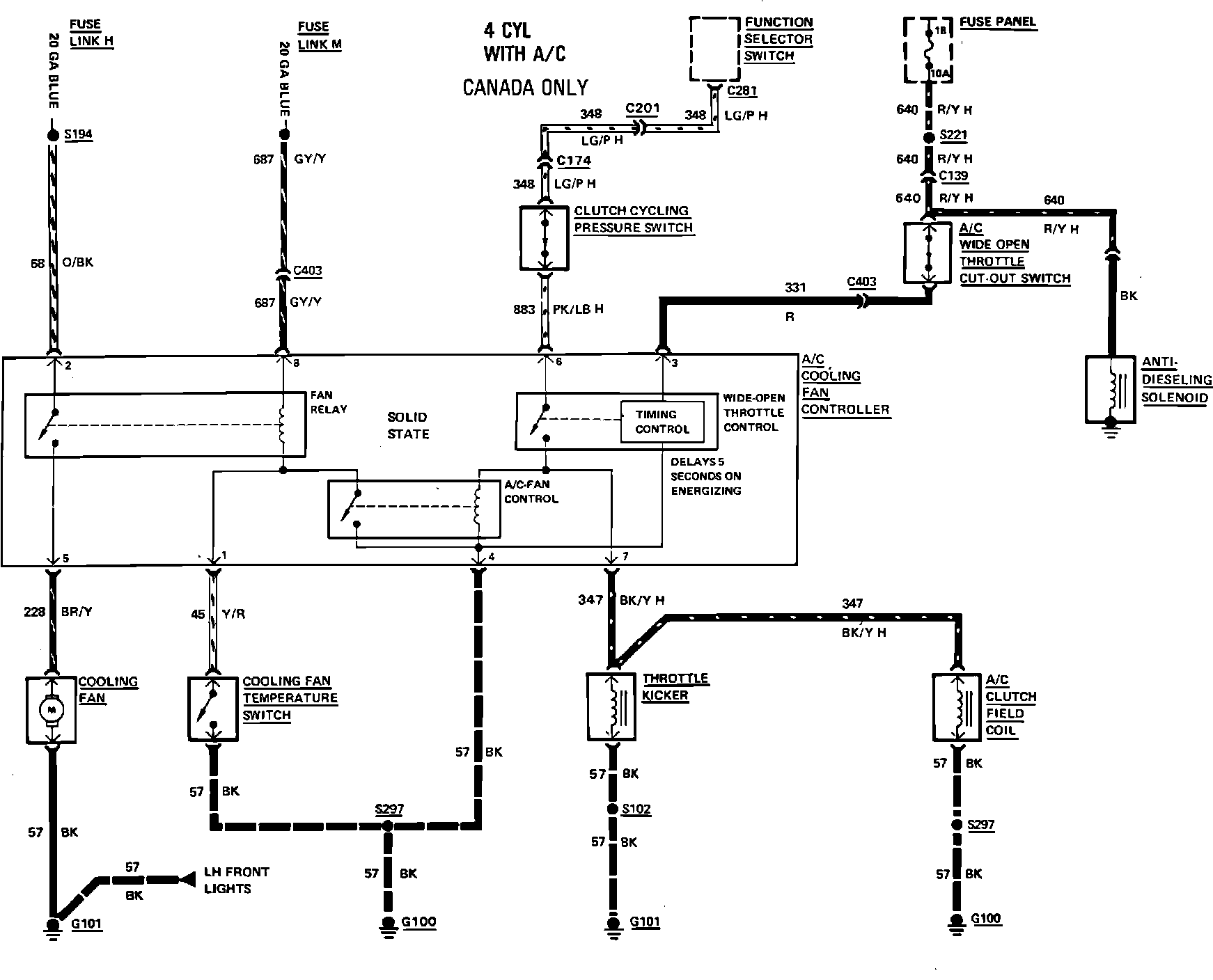 Canada - Cooling Fan Wiring Circuit. 1985 4 Cylinder Exc. Federal: