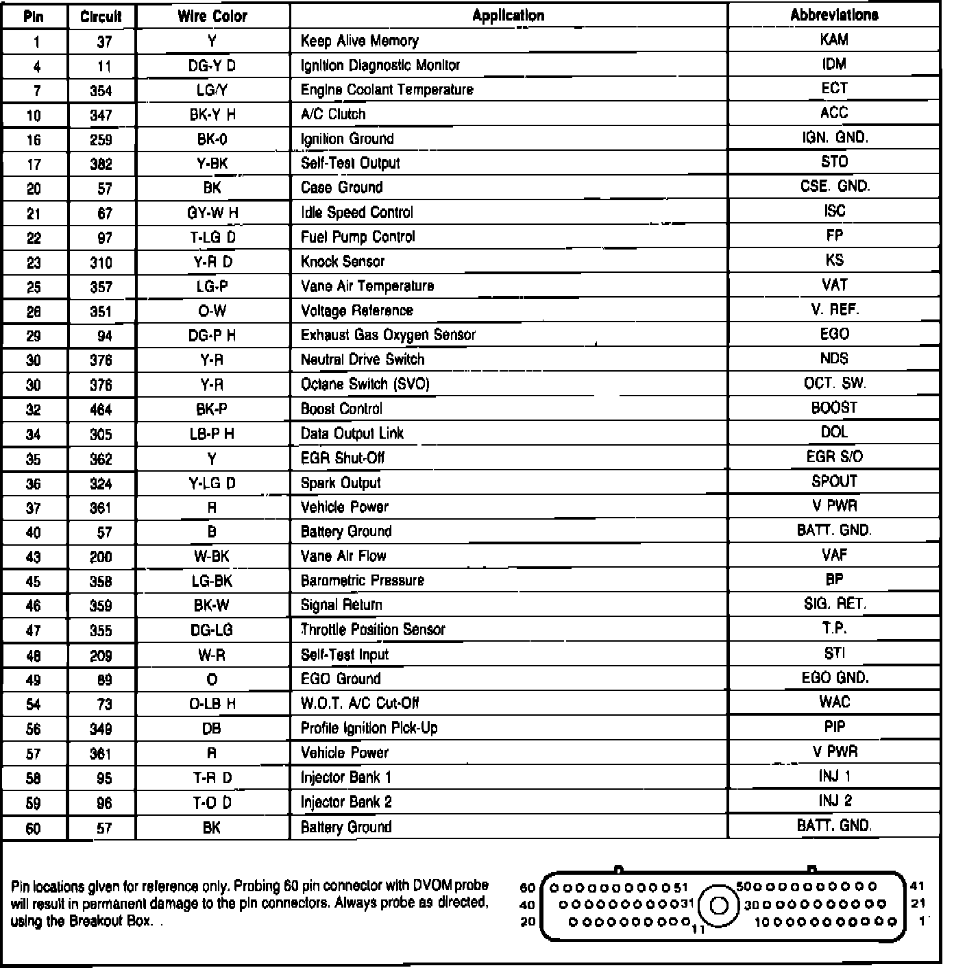 Fig. 156 EEC-IV module connector pin usage. 1985 Mustang & Mustang SVO W/4-140 EFI turbocharged engine:
