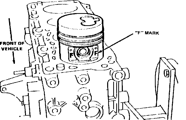 Pistons are available in standard size and oversize of .020 in. Install piston with an ``F'' mark, Fig. 23, on piston toward front of engine. Connecting rods have alignment marks stamped on one side of main bearing bore boss, Fig. 24. After piston and connecting rod assemblies have been installed, check side clearance between connecting rods on each crankshaft journal. Clearance should be .0043---.0103 inch.