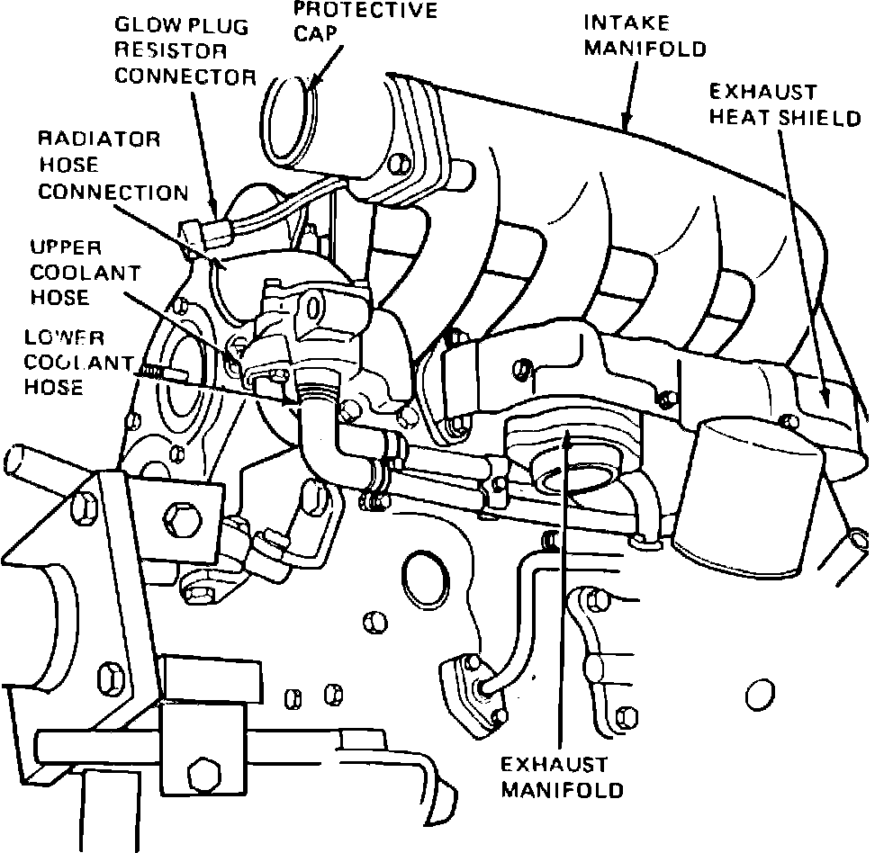 5. Disconnect upper and lower coolant hoses from thermostat housing.