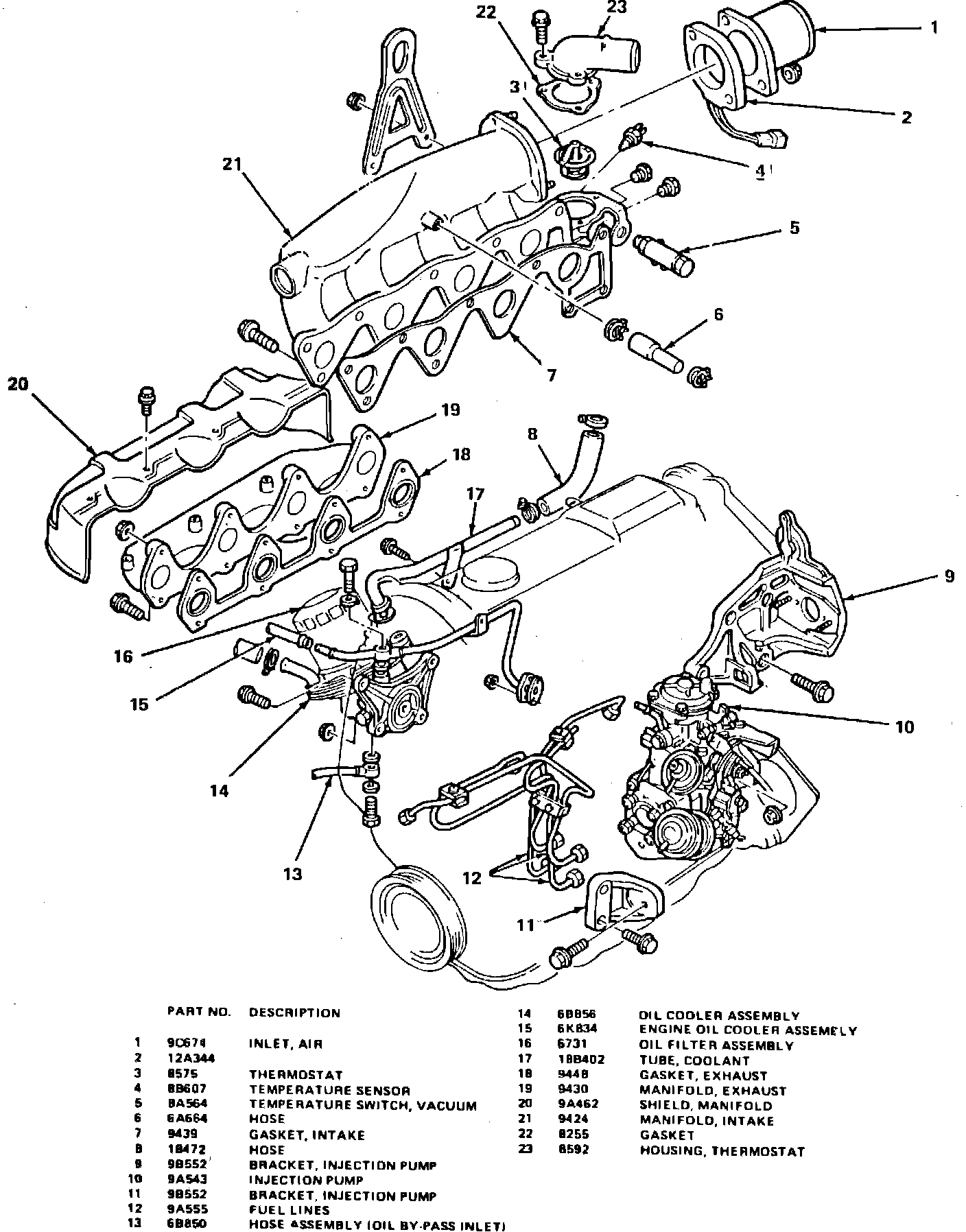 Intake manifold, exhaust manifold & injection pump components: