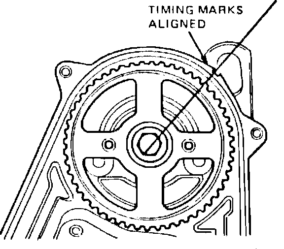 3. Rotate crankshaft pulley two revolutions clockwise until flywheel TDC timing mark aligns with pointer on rear cover plate, Fig. 17. Ensure injection pump and camshaft sprocket timing marks are aligned with their marks, Fig. 18.