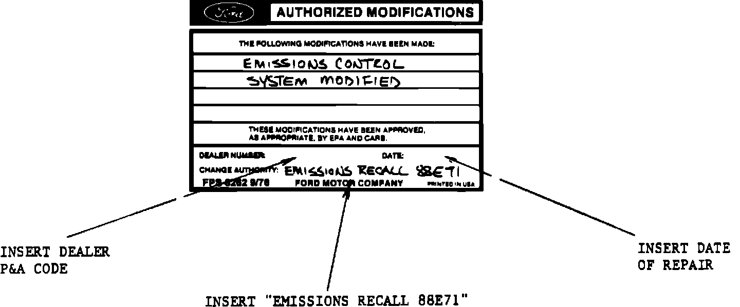 PREPARE THE DECAL AS SHOWN. AFFIX THE DECAL TO A FLAT, CLEAN SURFACE ON THE RADIATOR SUPPORT. ORDER THE DECALS ON YOUR WEEKLY STOCK ORDER PAD. (AUTHORIZED MODIFICATIONS DECAL, FORM FPS-8262).