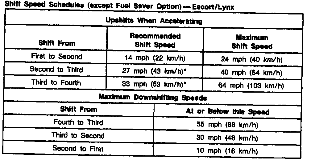 MTX II 4-spd M/T, Shift Speed (Escort/Lynx):