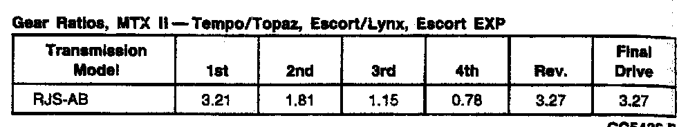 MTX II 4-spd M/T, Gear Ratios (Escort/Lynx):