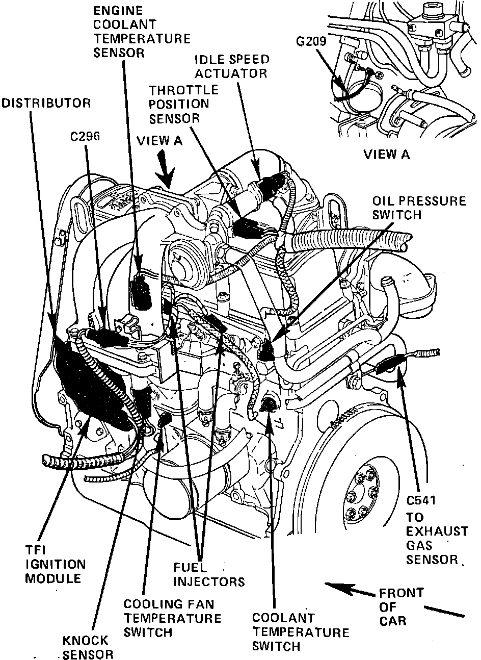 Coolant Temperature Sensor/Switch (For Computer): Locations