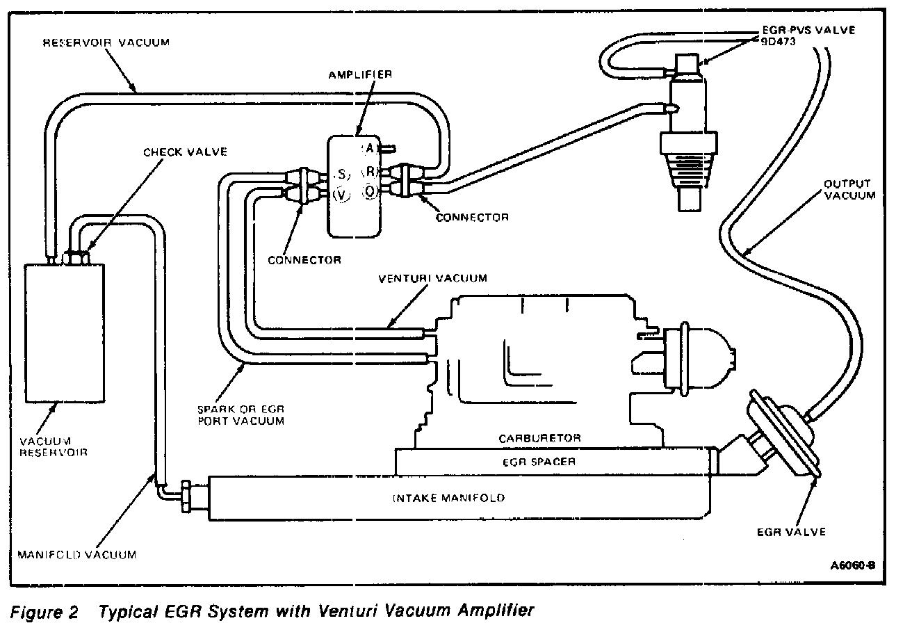 ^ Connect a vacuum gauge to the hose at the EGR Port O. The gauge may read as much as 6.8 kPa(2 in-Hg) at idle.