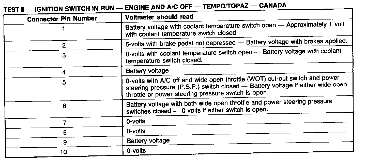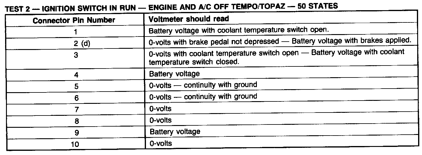 Test 2: Ignition Switch In RUN, Engine And A/C OFF: