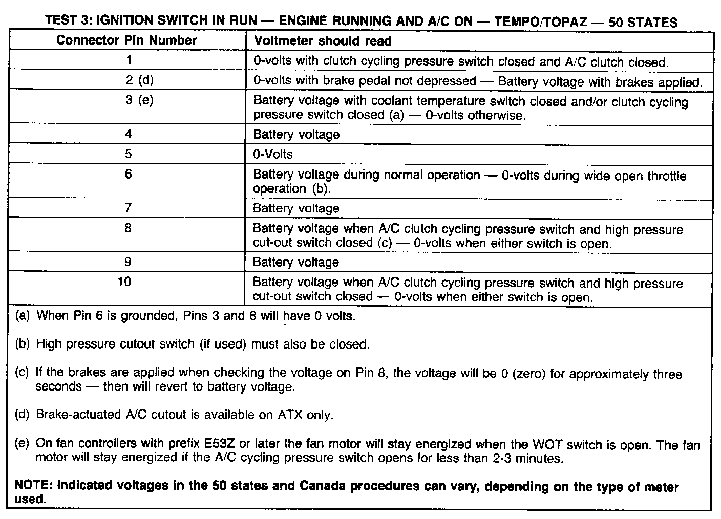 NOTE: Indicated voltages in the 50 States and Canada procedures can vary, depending on the type of meter used.