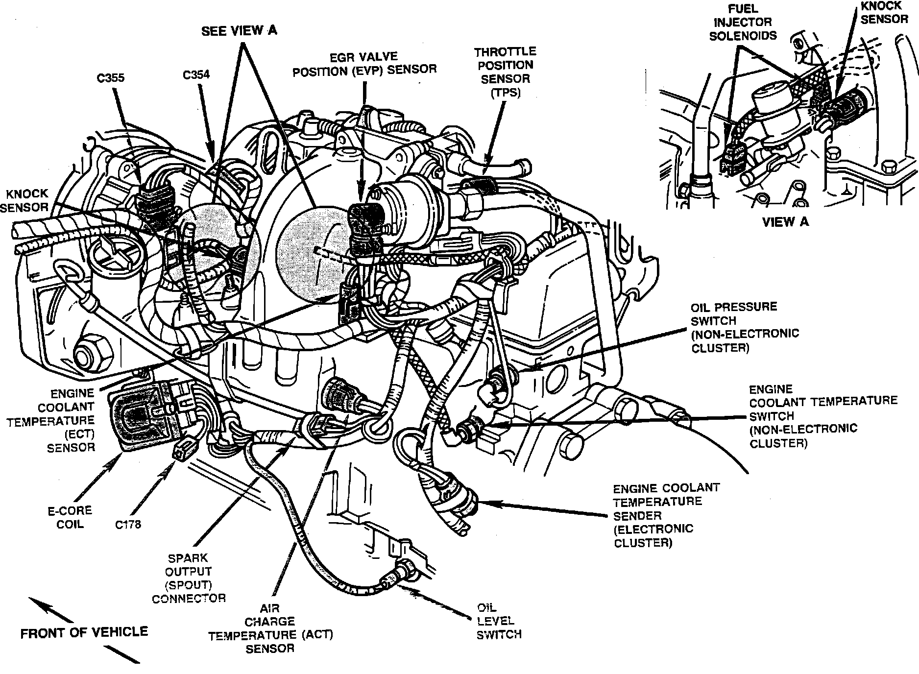 Coolant Temperature Sensor/Switch (For Computer): Locations