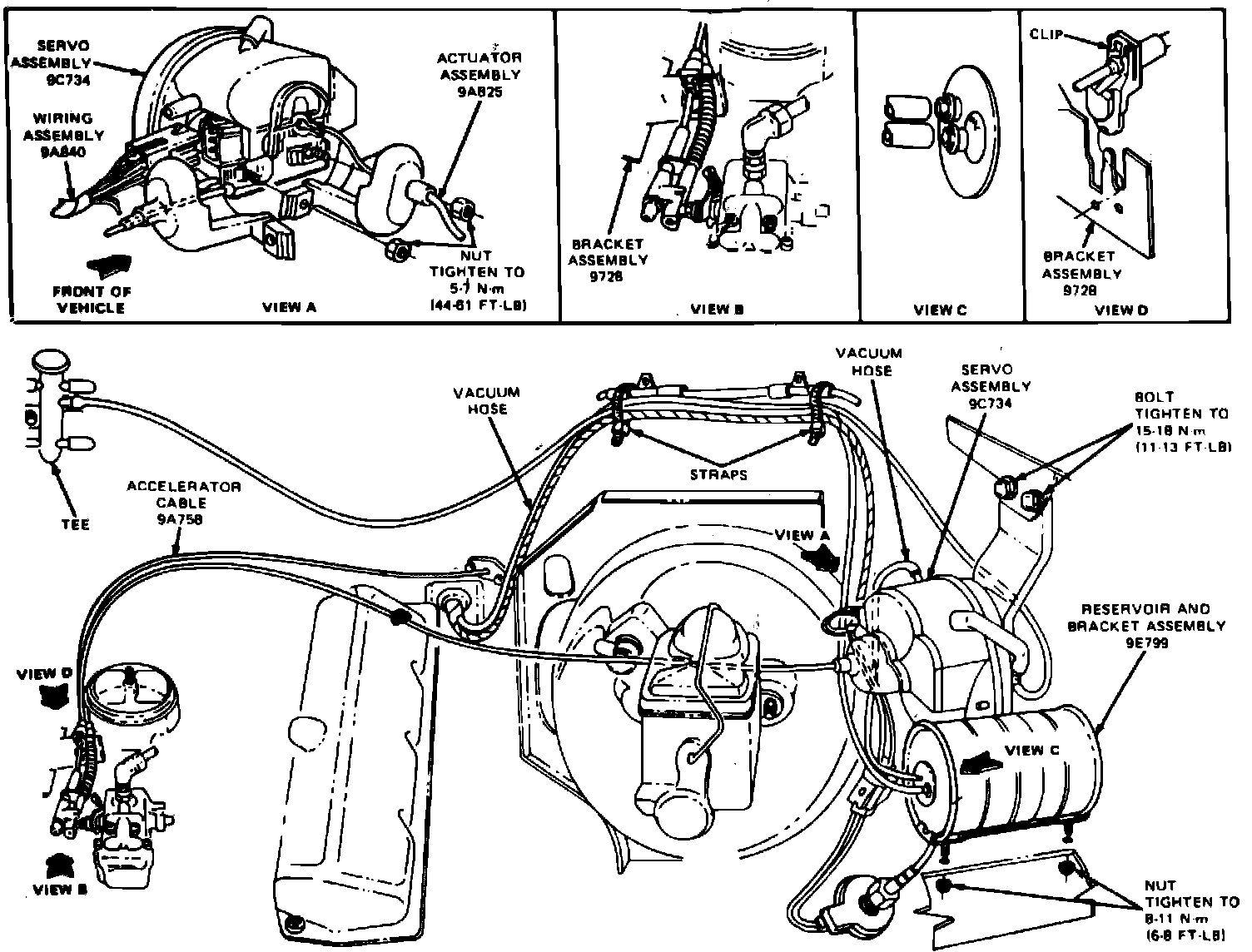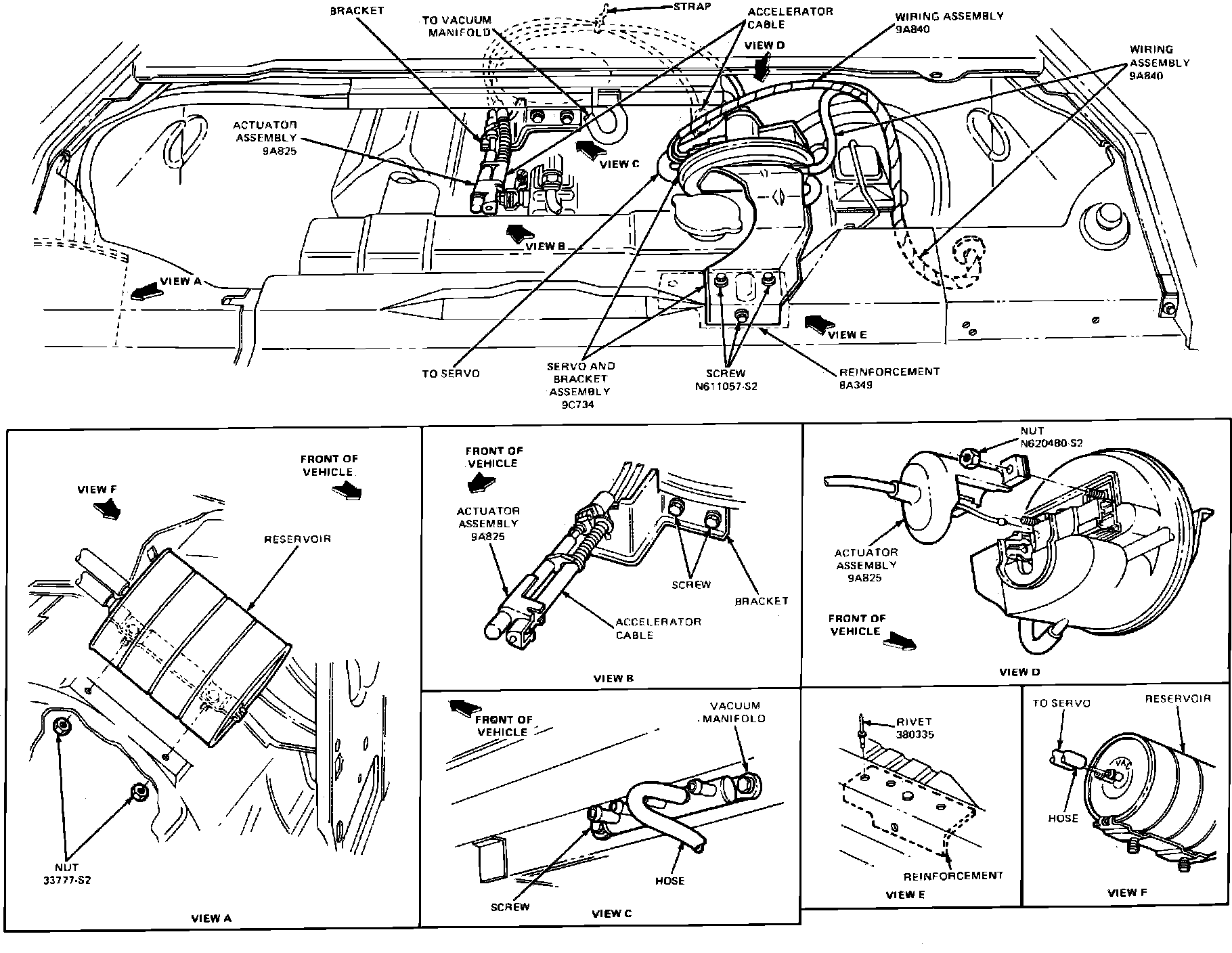 Fig. 20 Actuator cable adjustment. 1984---87 E-250---350 w/diesel engine:
