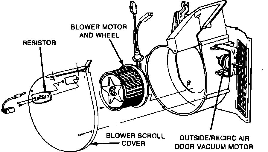2. Remove blower motor assembly retaining screws and remove blower motor.