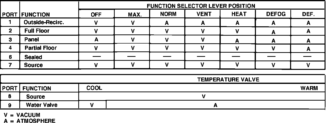 Fig. 29 Manual A/C system vacuum control chart: