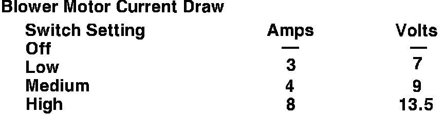 Fig. 38 Blower motor current draw & voltage test chart: