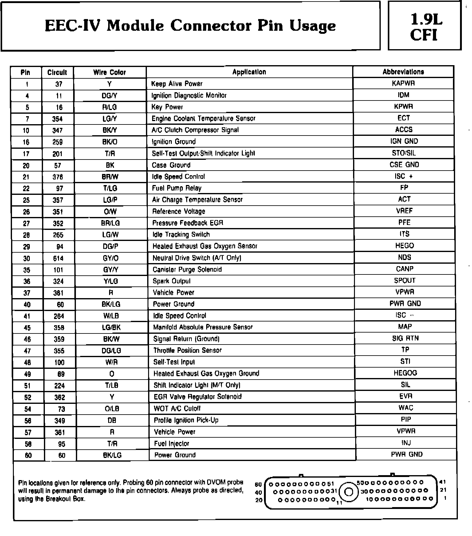 Fig. 293 EEC-IV module connector pin usage. 1987 4-116 CFI engine: